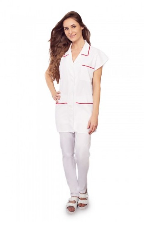FEHÉR KÖPENY ENYHÉN KARCSÚSÍTOTT, PIROS PASZPOLLAL LF306